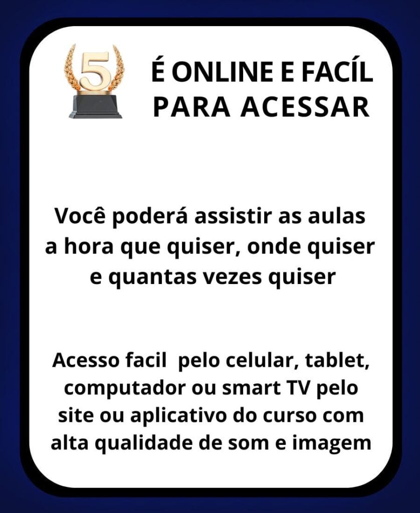 Sim, nosso curso é 100% online em vídeo aulas e você vai poder assistir as aulas onde quiser, quando quiser e a hora que quiser.